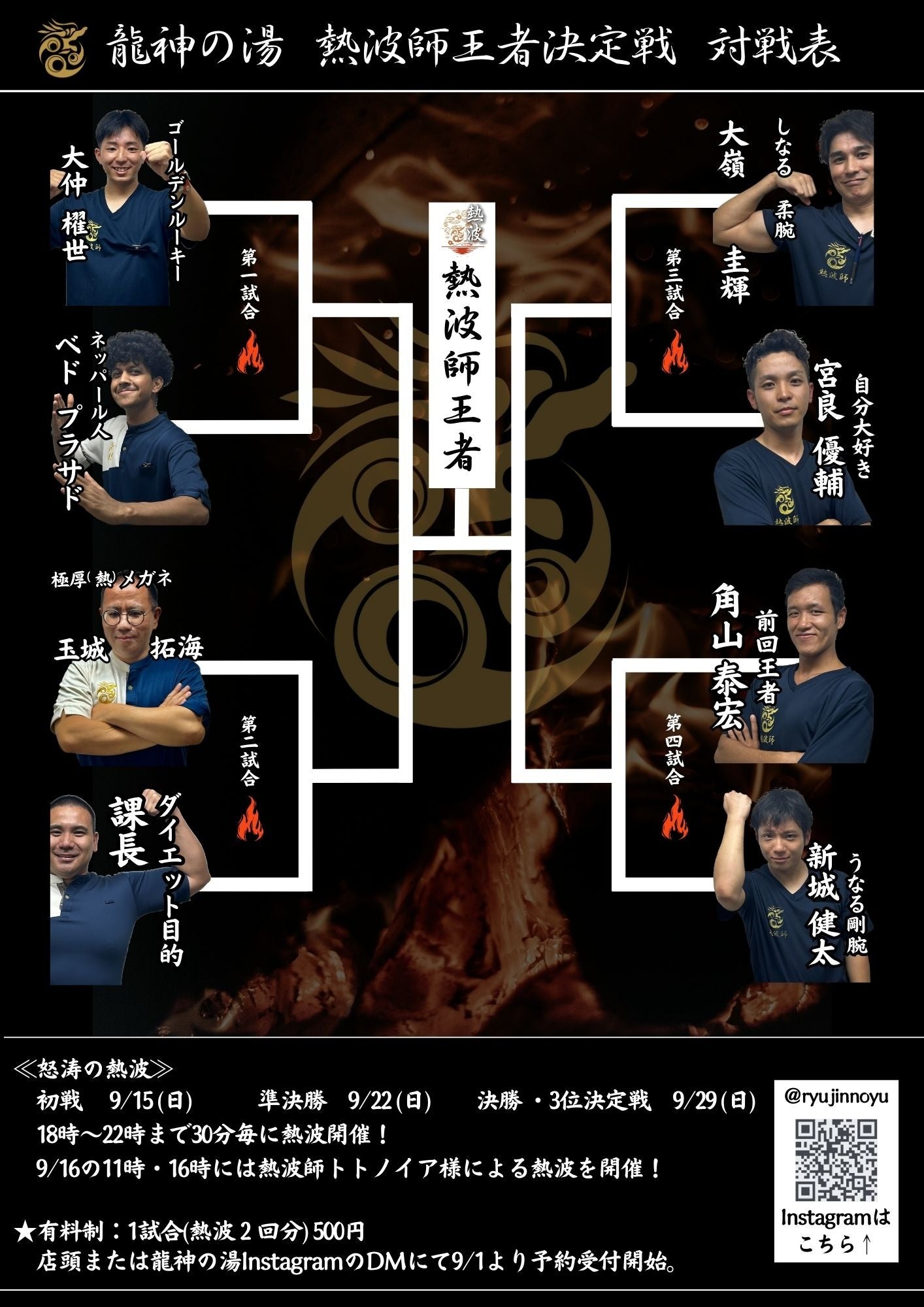 対戦表や詳細につきましては店頭、龍神の湯インスタグラムアカウントにて配信いたします