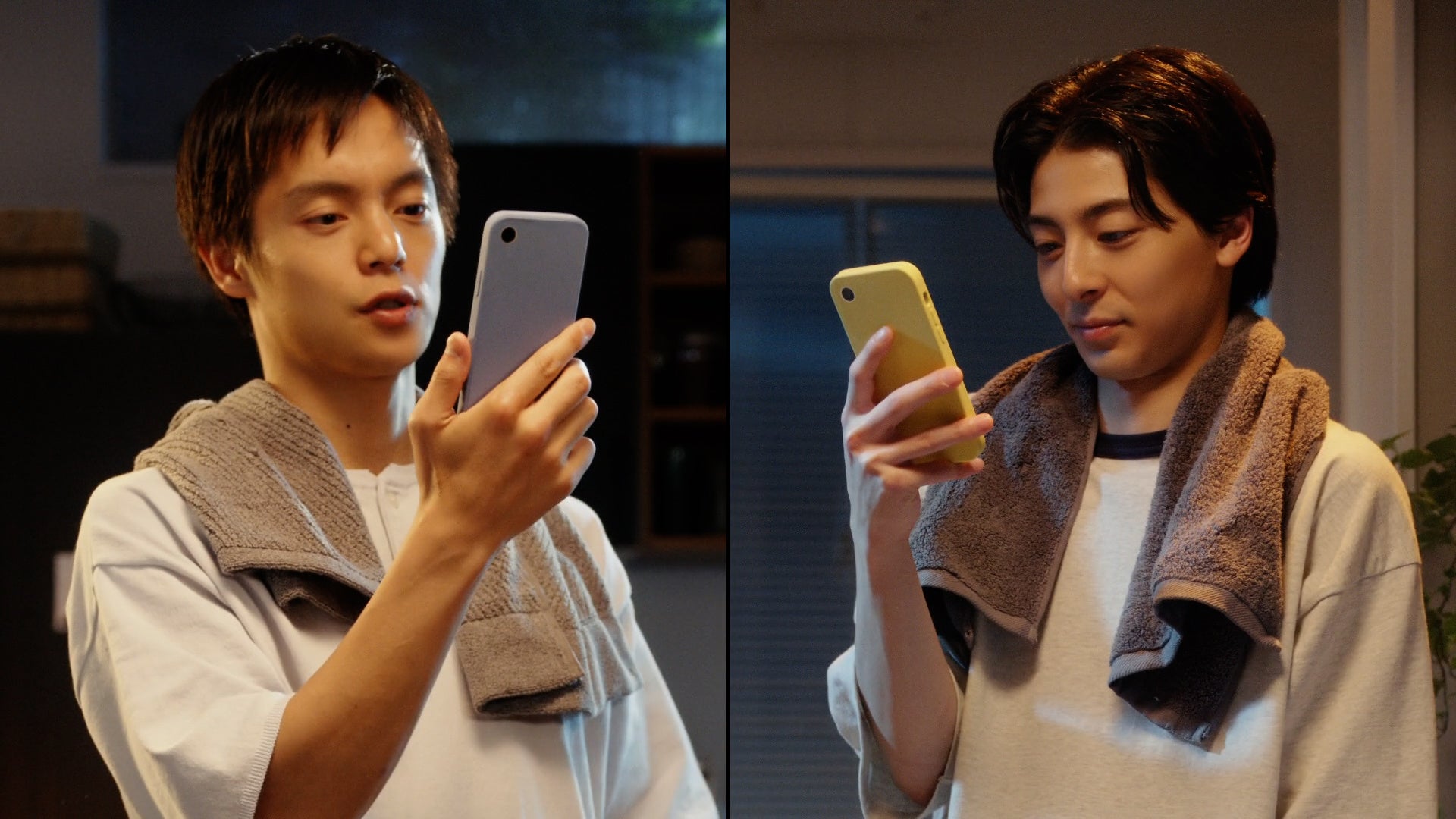 一人暮らしのフレッシュな若手ビジネスマンを演じる窪田 正孝さんと高杉 真宙さん。窪田さんが大事な仕事のプレゼン、高杉さんがデートを翌日に控えているという設定です。