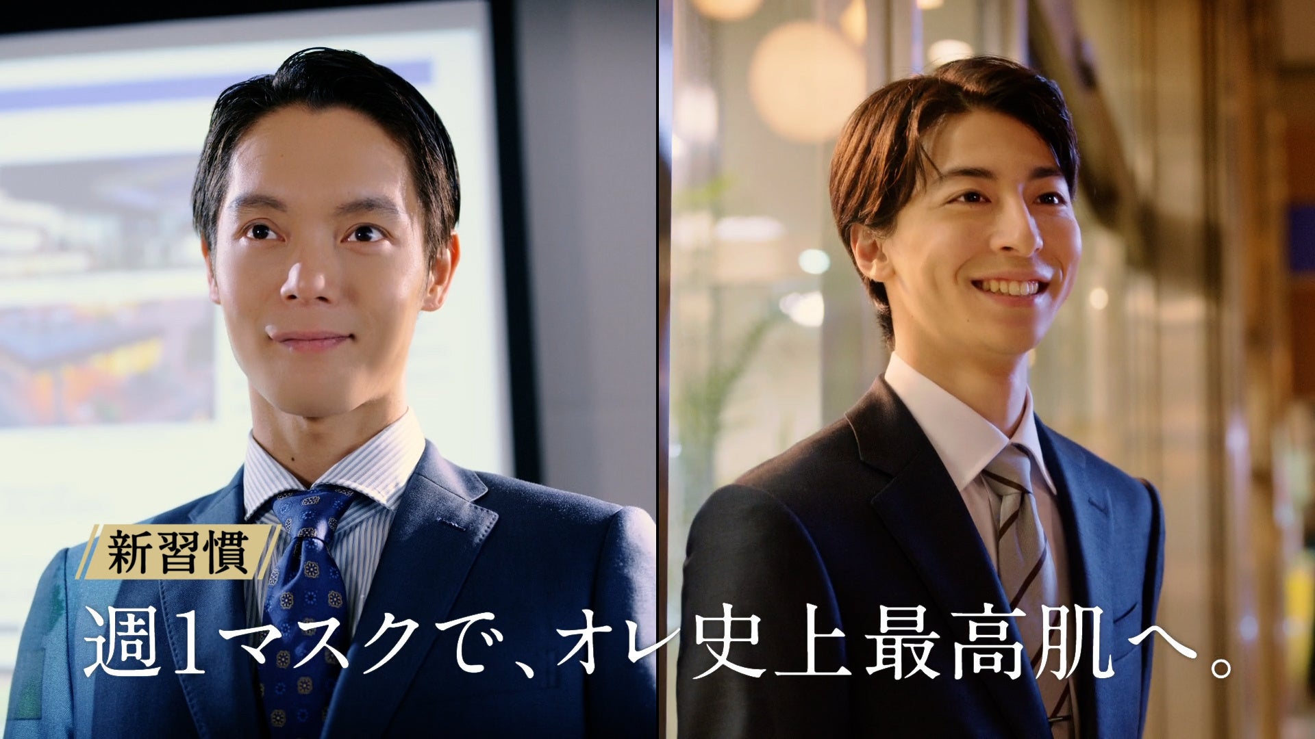翌日プレゼンに臨む窪田さんは自信にあふれた表情で、デートを前にパートナーと合流する高杉さんは爽やかな笑顔です。ムービーは、窪田さんと高杉さんの「週1マスクで、オレ史上最高肌へ。」というセリフと共に締めくくられます。