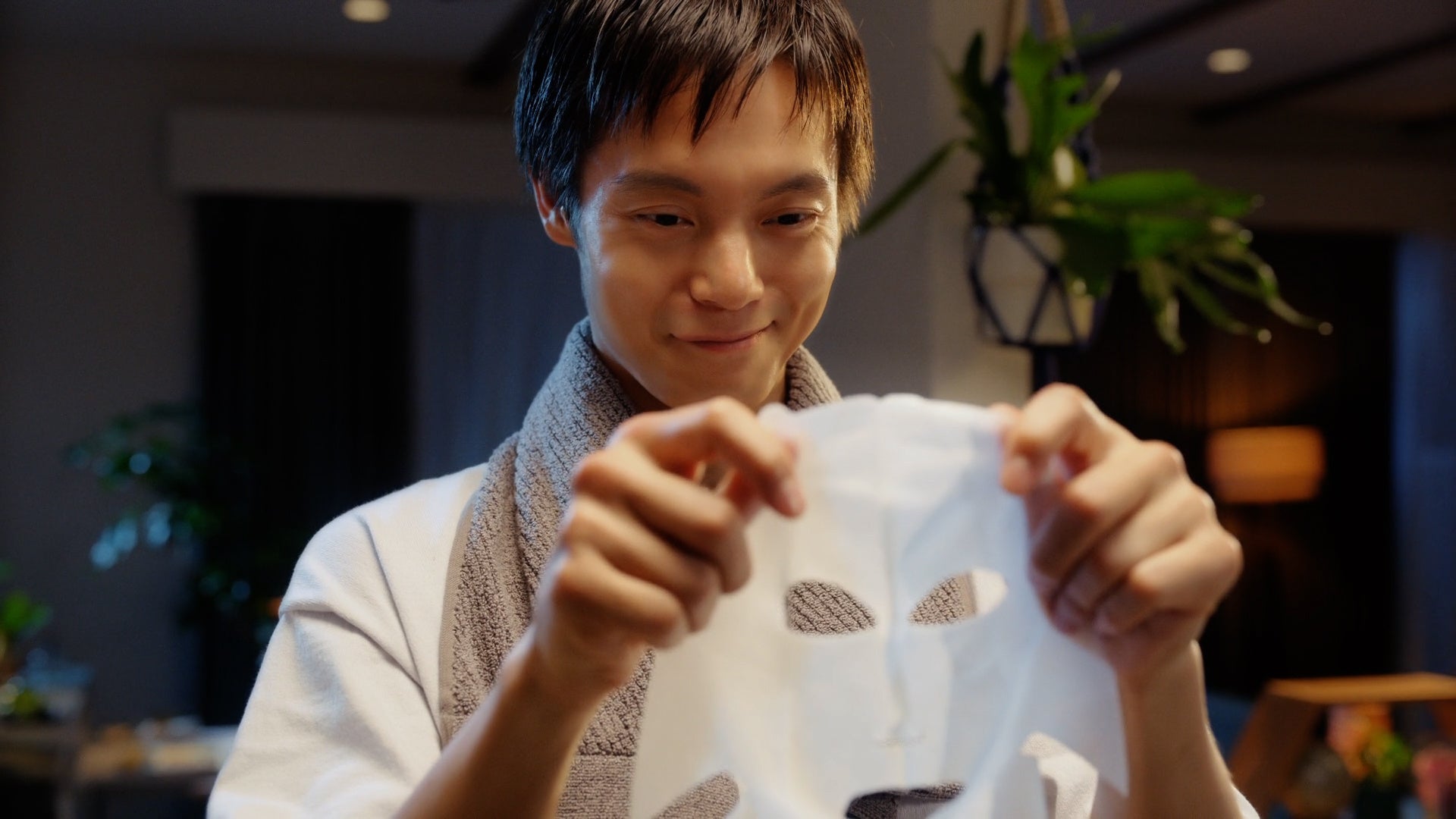 最近、化粧水や乳液を使う男性も増えてきていると感じていますが、まだまだシートマスクまで手を伸ばしているという方は多くないように思います。今回のシートマスクは顔全体をかなり覆ってくれる印象で、特に鼻まで3D形状になっているところは、シートマスク初心者でも安心して使える嬉しい仕様だと思います。CMを通じて少しでもハードルが下がり、使ってくださる方が増えたら良いなと思います。