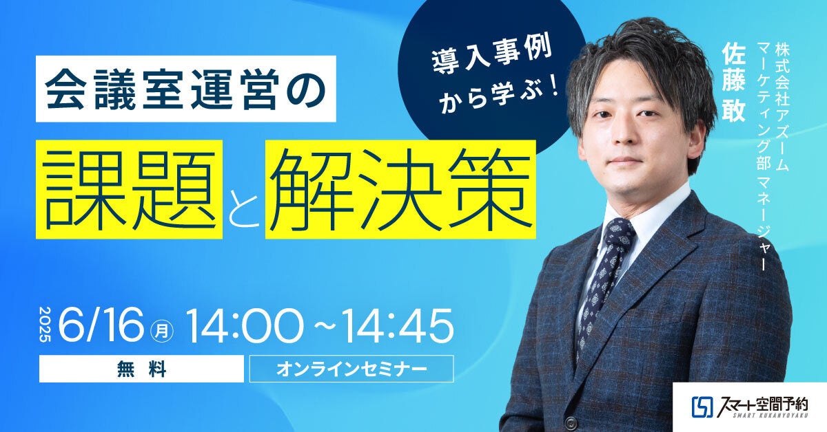株式会社アズーム(本社:東京都渋谷区代々木、代表取締役:菅田洋司、以下:アズーム)は、6月16日(月)に無料オンラインセミナー「導入事例から学ぶ!会議室運営の課題と解決策」を開催いたします。