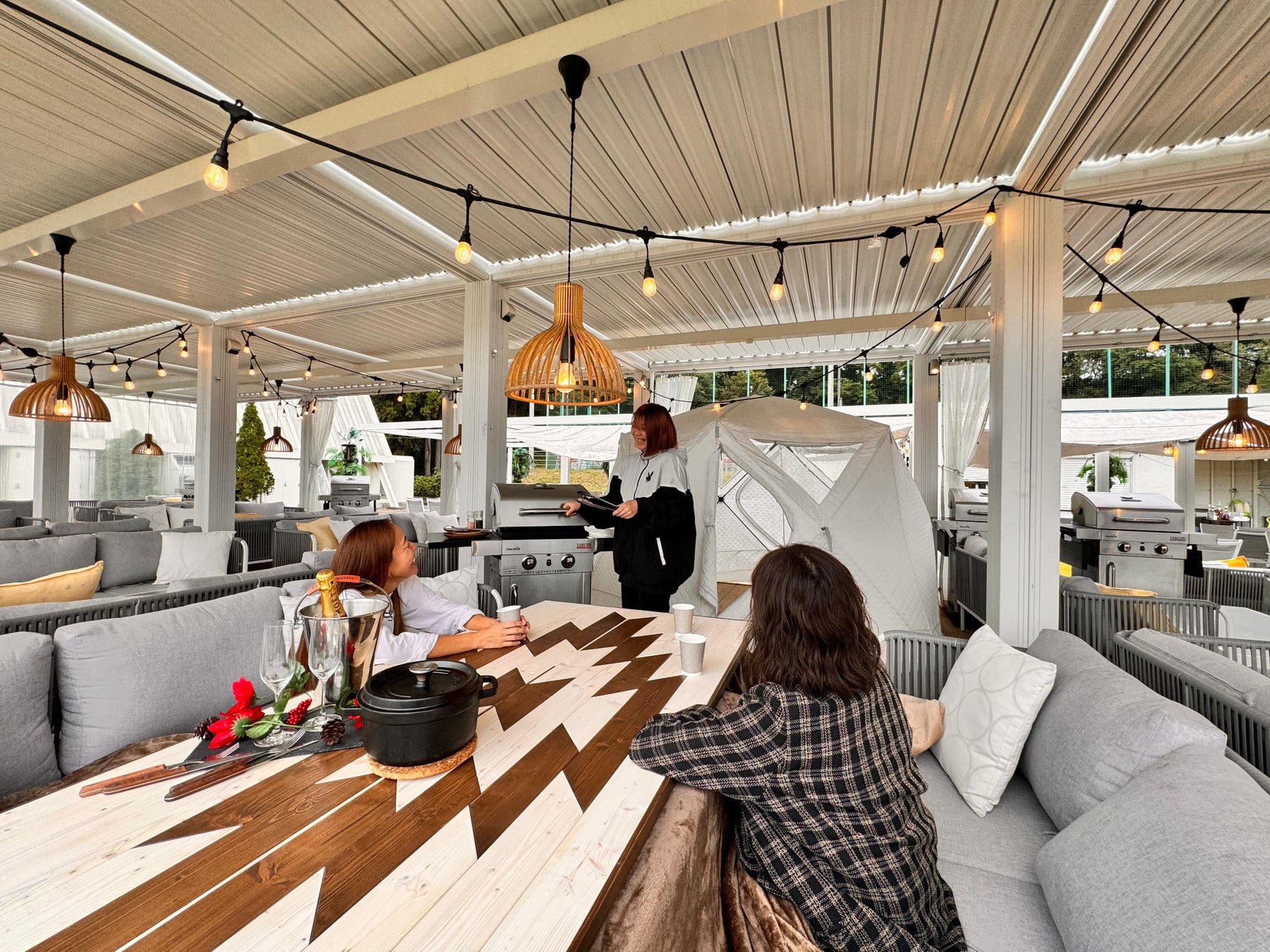 GROVE HILLSでは、冬の定番である「こたつ」や「あたたかい鍋料理」を取り入れたデイキャンプスタイルのBBQ体験を提供します。ラグジュアリーエリアには、寒さを遮るカーテン付きのこたつブースや、グランピング気分を楽しめるテントを随所に設置。最大6名までゆっくりと過ごせ、仲間や家族と冬のアウトドアを満喫できます。6名以上でもブースを隣り合わせてご利用いただけます。