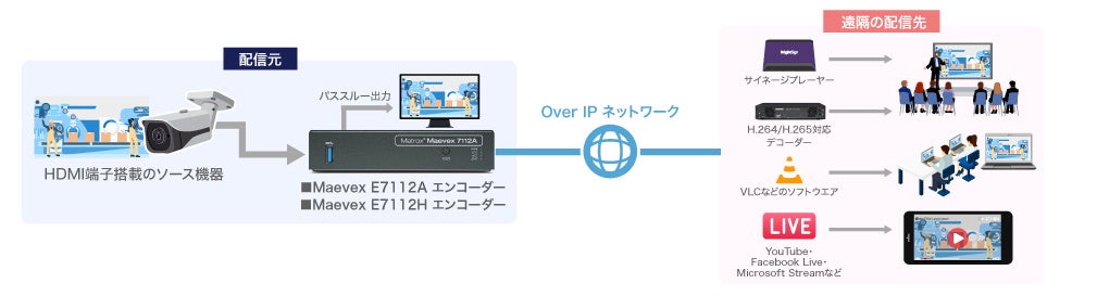 H.264対応の『7112Aエンコーダー』とH.264・H.265両対応の『7112Hエンコーダー』をラインナップしており、高画質で低ビットレート・低遅延伝送を可能にします。