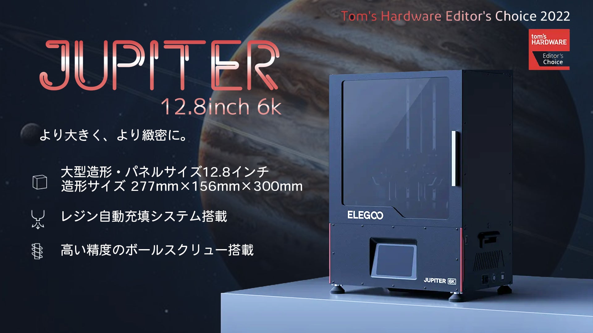 277×156×300mmの大型造形!6Kの超高解像度!3Dプリンター「Elegoo Jupiter」を発売!50ページ超の解説も付属!(株式会社サンステラ)