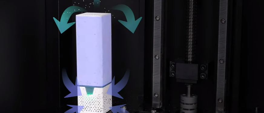 レジン不足に困らない、自動充填システムを搭載。また、消臭エアフィルターを搭載しているため、快適な作業空間を実現します。