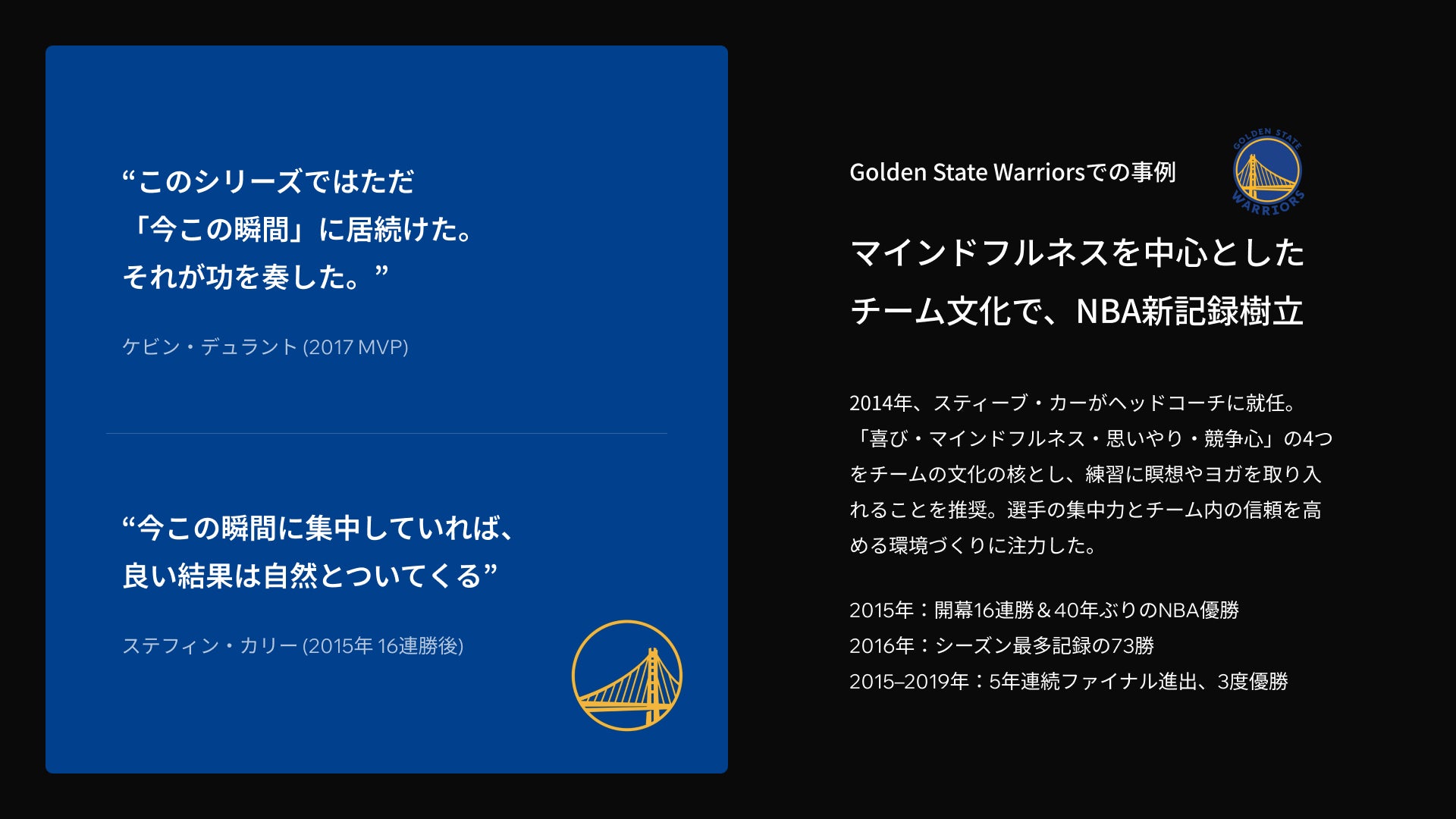 近年、マインドフルネスは米国のNBAやMLBといった海外トップリーグのチームにおいても、競技力向上やメンタルケアの手法として組織的・日常的に取り入れられており、その効果は多くの実証研究によっても裏付けられています。国内でも、男子プロバスケットボールリーグ Bリーグ所属の千葉ジェッツふなばしが、Upmindとのパートナーシップを通じて今シーズンより「Upmind for Athletes」を導入し、選手の心の健康維持と競技力向上に取り組んでいます。