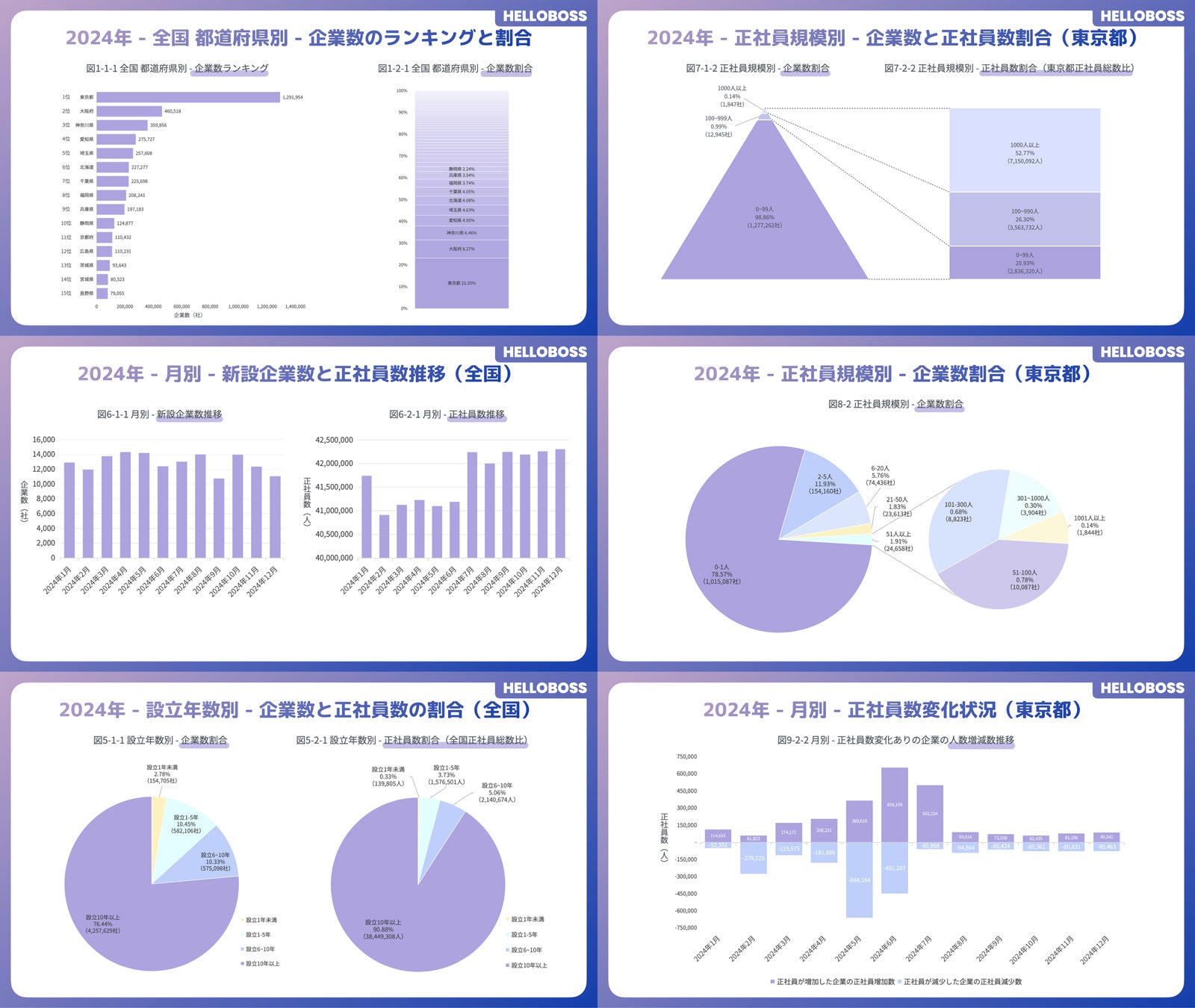 『HelloBoss』、独自の企業データベース「HelloData」を活用した、2024年の国内企業数と正社員数の調査結果を発表