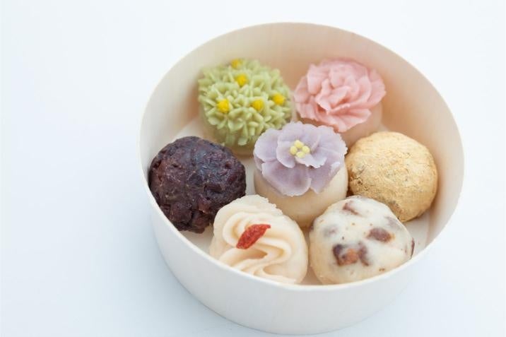 見た目の美しさだけでなく一つ一つのお味にもこだわり、餡は国産の北海道産小豆と手亡豆を使用、