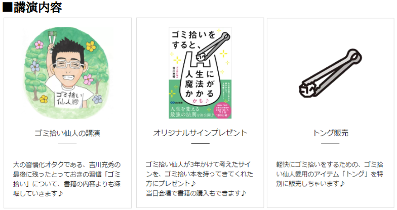 - 企画名:ゴミ拾い仙人 無料講演in東京