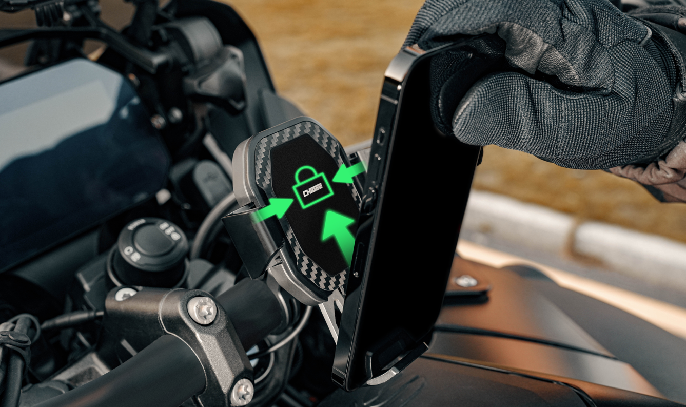 CG2マウントは、シンプルかつコンパクトなデザインで、車両に完璧にマッチします。特にオートバイに取り付ける場合、見た目を損ねずにスマホを取り付けることができるので、非常に便利です。あなたの車両に取り付けると、まるで一体化しているかのような印象を与え、美しさを引き立てます。