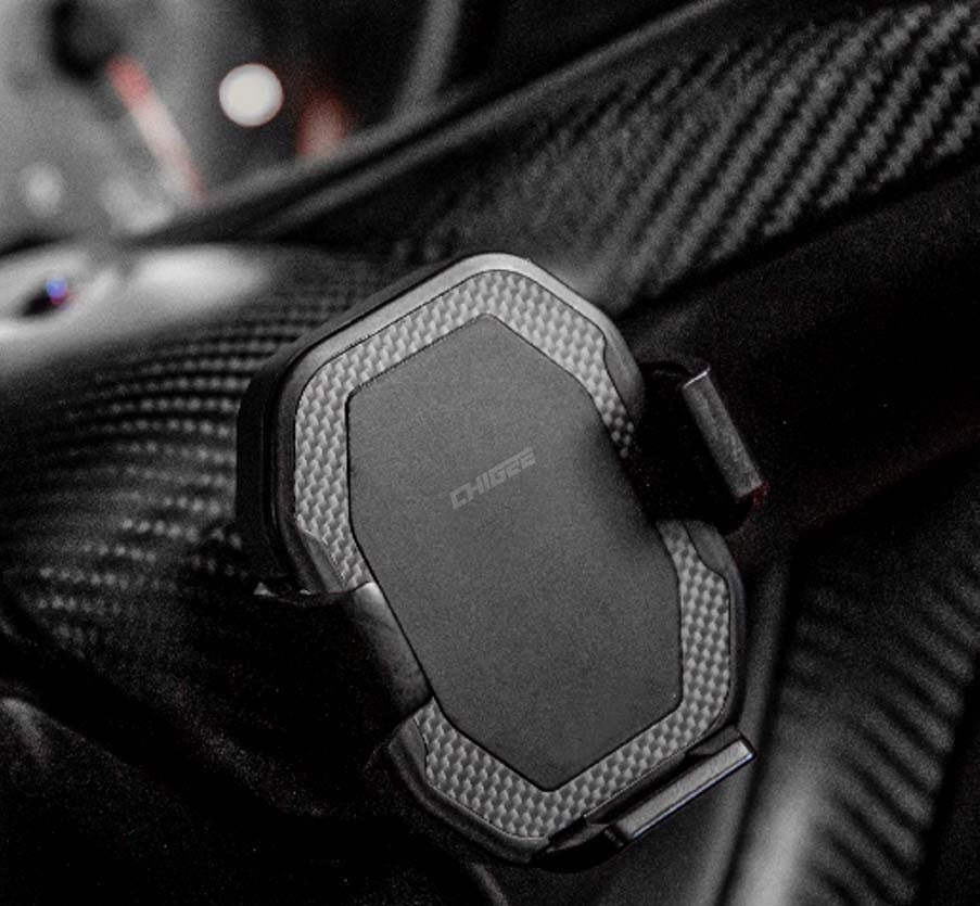 この素晴らしいスマホホルダーの正面には、最高品質の1.5Kカーボンファイバーエレメント素材が使用されています。