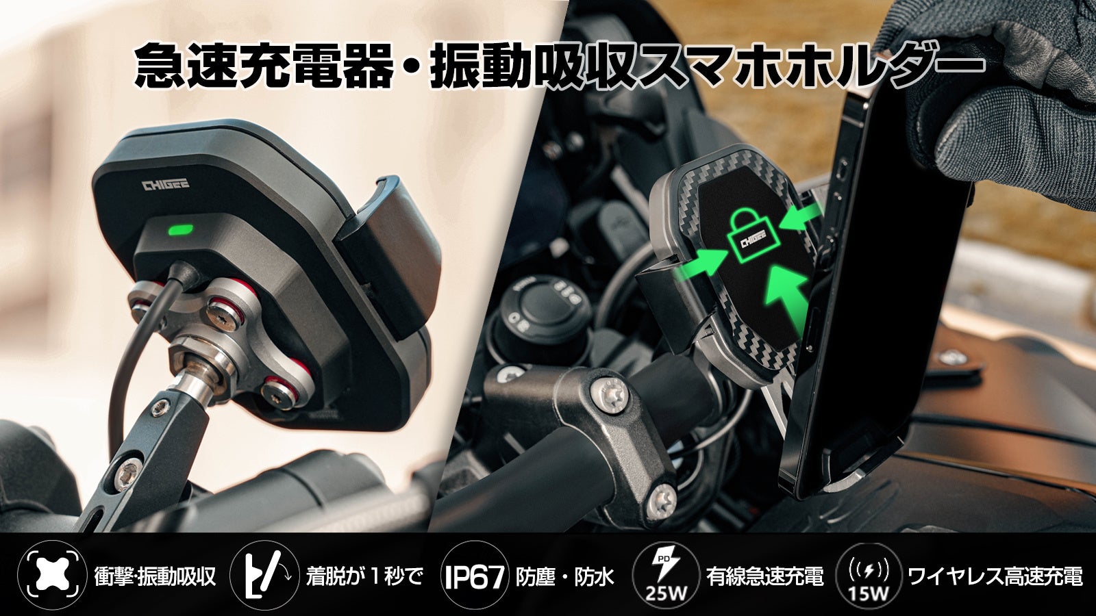 片手で瞬時に着脱!たったこれだけでスマホをバイクに取り付けられる!通勤や仕事用にオススメなスマホホルダーです