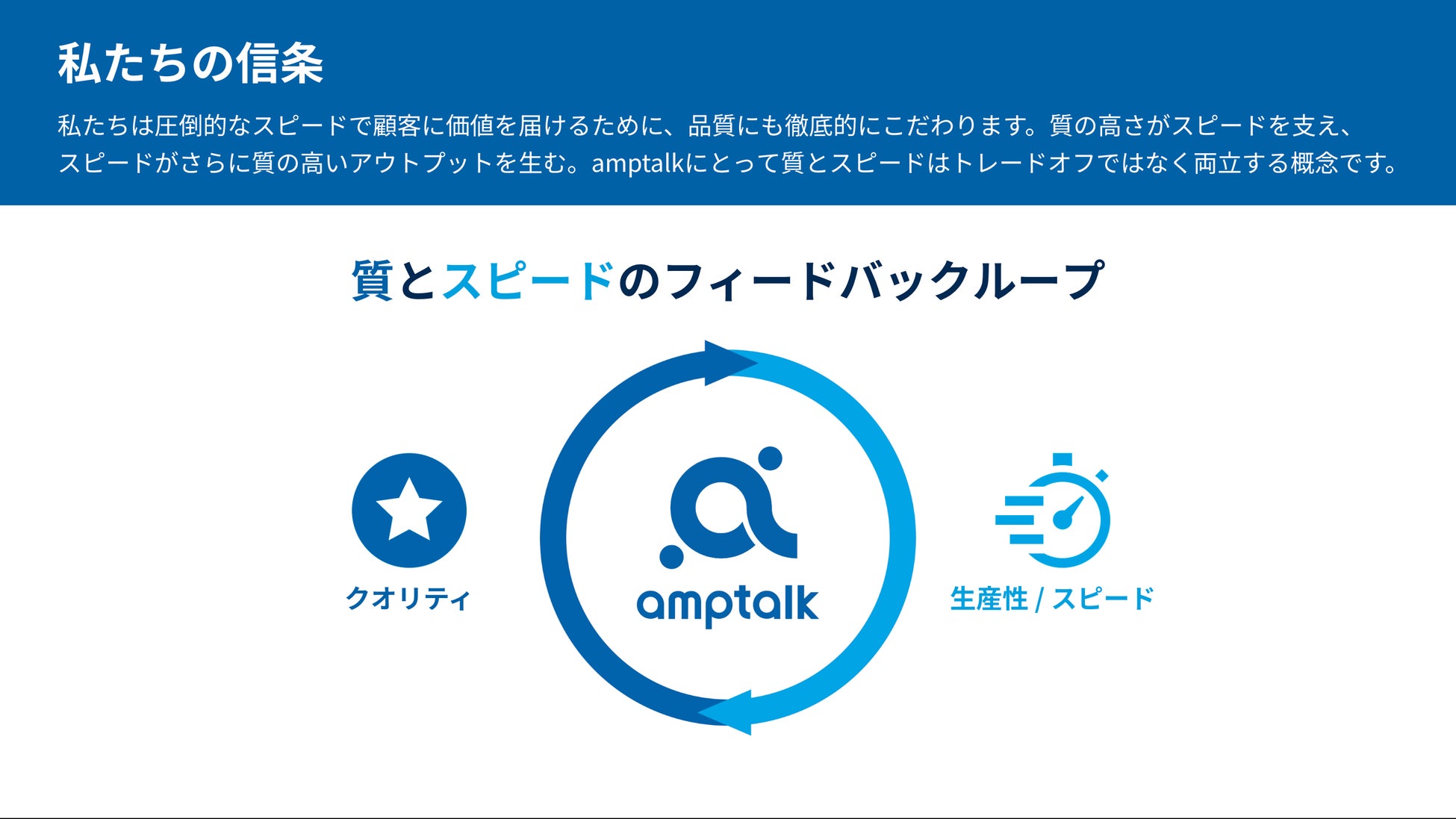 amptalkは、「人と人が向き合う時間を最大化する」をミッションとし、「 昨日まで世界になかったチャンスを」作り出すことを目指しています。“人”だけではできなかったことを成しとげることで、“人”がより効率的に働ける世の中を作る会社です。