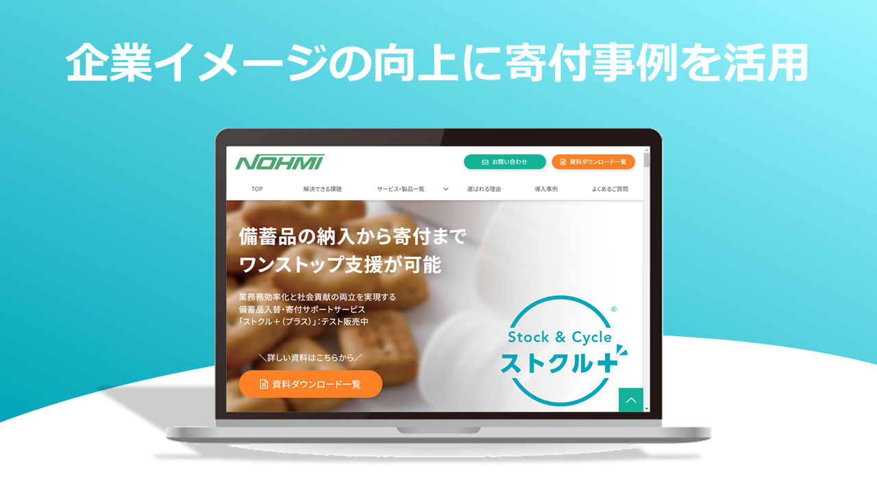 能美防災は、「ストクル+」を通じて、企業における備蓄品入替のサポートだけでなく、備蓄品の寄付による社会貢献活動の促進を目指します。貴社のCSR活動やサステナビリティ活動に「ストクル+」をぜひご活用ください。