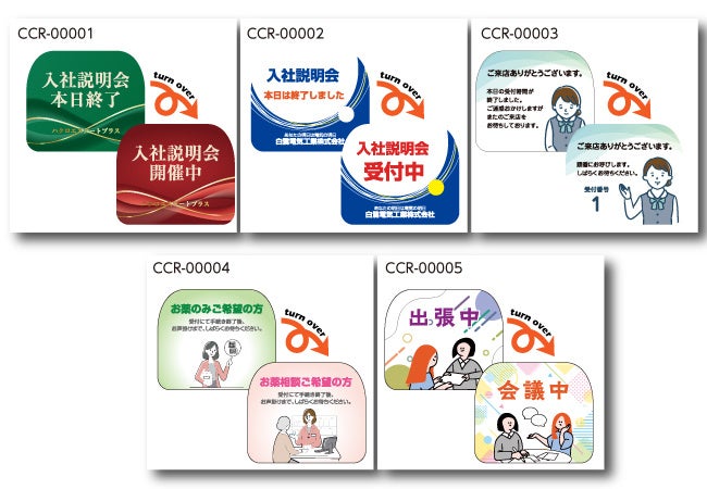 クルッとひっくり返すだけで異なるメッセージを表示可能。会社説明会から展示会、医療施設、飲食店まで、幅広いシーンで活躍。