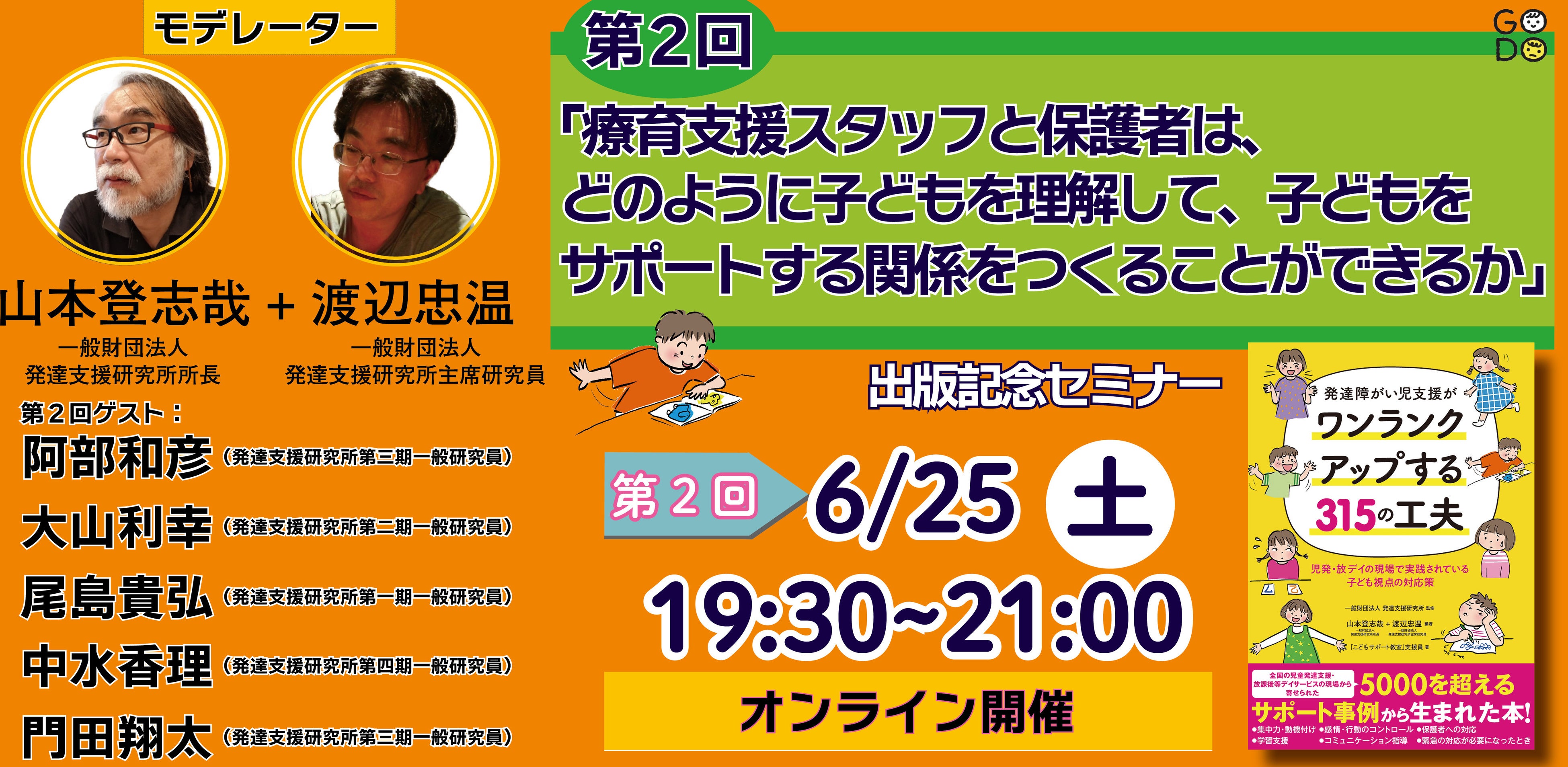合同出版では『発達障がい児支援がワンランクアップする315の工夫』出版記念セミナー 第2回「療育支援スタッフと保護者は、どのように子どもを理解して、子どもをサポートする関係をつくることができるか」を6月25日(土)にオンラインで開催いたします!