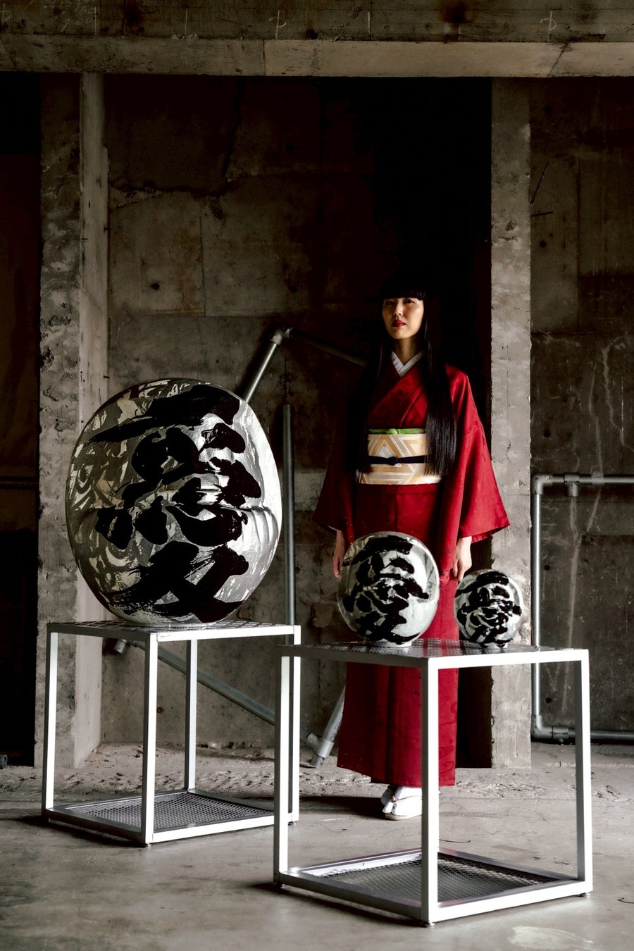 初のタッグとなる書道家の万美 / MAMIMOZIとのコラボレーションは、アパレルのみならず、51個限定制作となるだるまや、 MAMIMOZIの掛け軸を展開。