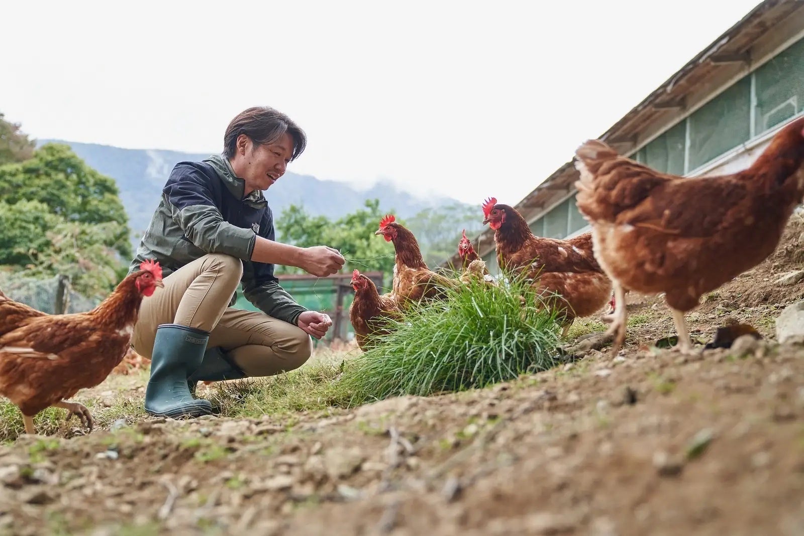 卵では取得が難しいとされる「有機JAS認証」や、世界でも高基準のアニマルウェル フェア(家畜本来の生態にあわせた健康的な 飼育環境を目指すもの)を日本の地で広めていくことを使命に、鶏たちのしあわせを追求した独自の養鶏方法で、鶏も人も自然(地域)も満たされる持続可能な畜産を目指しています。