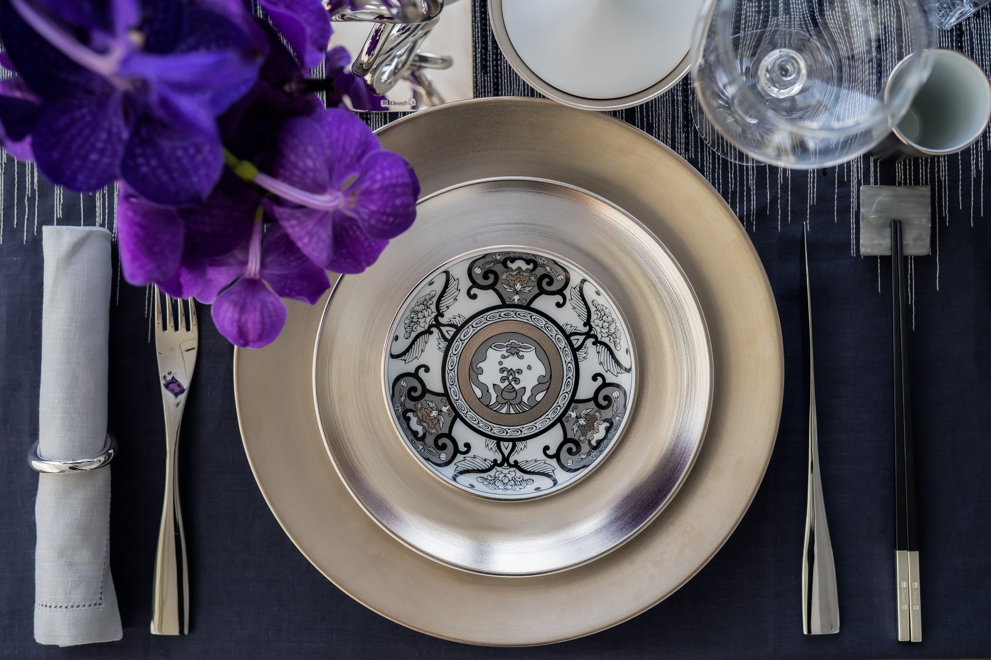 デザインは古来より縁起が良いとされる有田焼の伝統的絵柄である吉祥文様を、デザインを変えずそのまま使い、配色を変える事でモダンに表現しています。吉祥文様は、先人の陶工たちが、使う人の暮らしを物質・精神両面から豊かにしたいとの思いから、有田焼に多く用いてきた文様。その思いを世界中の皆様に器を通して届けたいという願いが込められています。