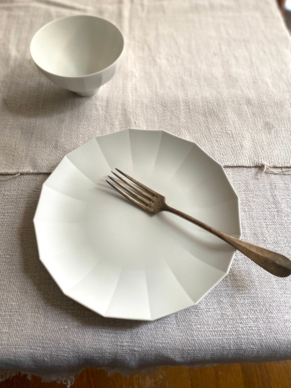 apl(エーピーエル)は、アリタポーセリンラボが届ける新素材ブランドです。釉薬を陶土に練りこむ事で素焼をせず、釉薬をかけずにそのまま本窯に入れる焼成方法により生産工程を省力化。温室効果ガスの排出量を約50%削減 、生産コストを約30%削減(当社比)。有田焼の原料「天草陶石」の素材そのものがもつ白磁の美しさが表現されています。