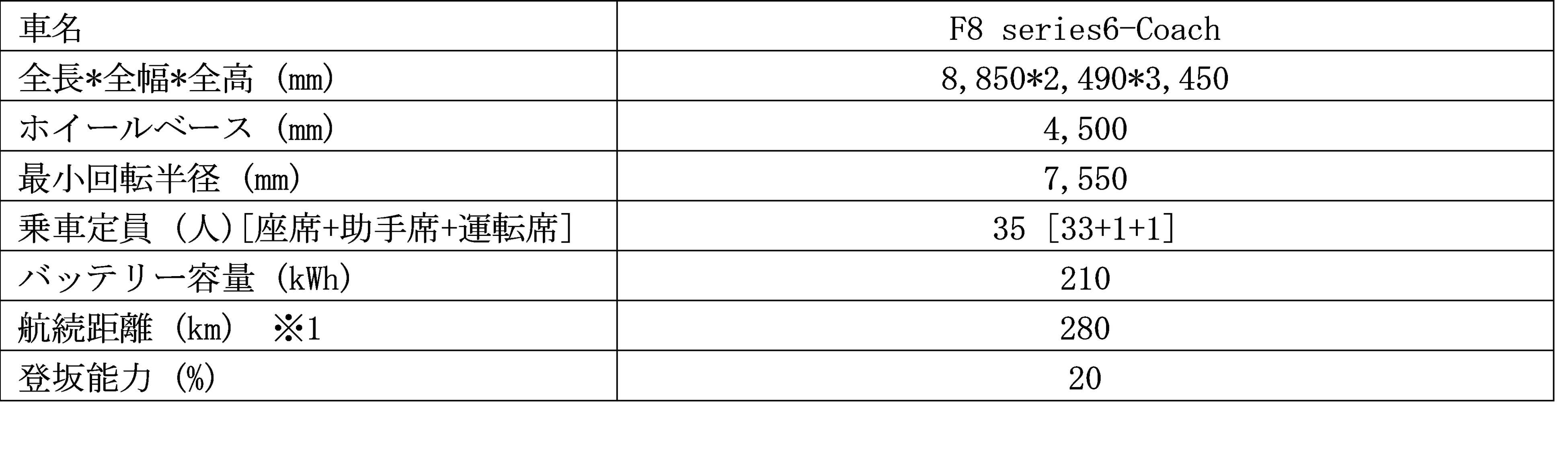 <主要諸元表>