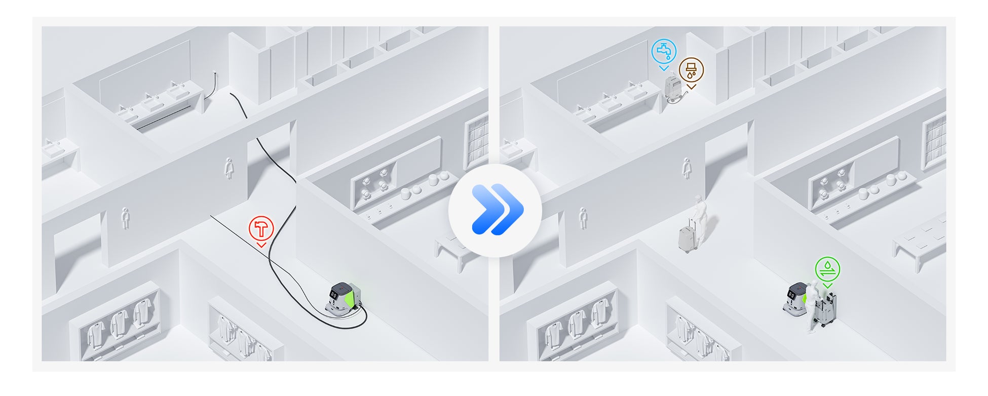 様々な施設にて多数の導入実績のある「CC1」ですが、導入にはいくつかの課題も見受けられます。「CC1」の使用には、給排水設備と電源を同時に提供でき、かつロボットが通行可能な幅(約1m以上)を持つエリアが必要です。しかし、導入検討施設の中には、これらを満たすエリアを確保できない施設もあり、またエリア確保のための改修工事にコストをかけたくないという要望も多くありました。このような現場の課題に対し、「CC1」の補助装置・移動式水タンクでは、置くだけで給排水・充電を行うためのエリアを確保できるため、現場の改修工事も不要です。施設への「CC1」導入を容易にすることで、PUDUは、さらなる導入拡大と清掃業務における負荷軽減・省人化ソリューションの提供を図ります。