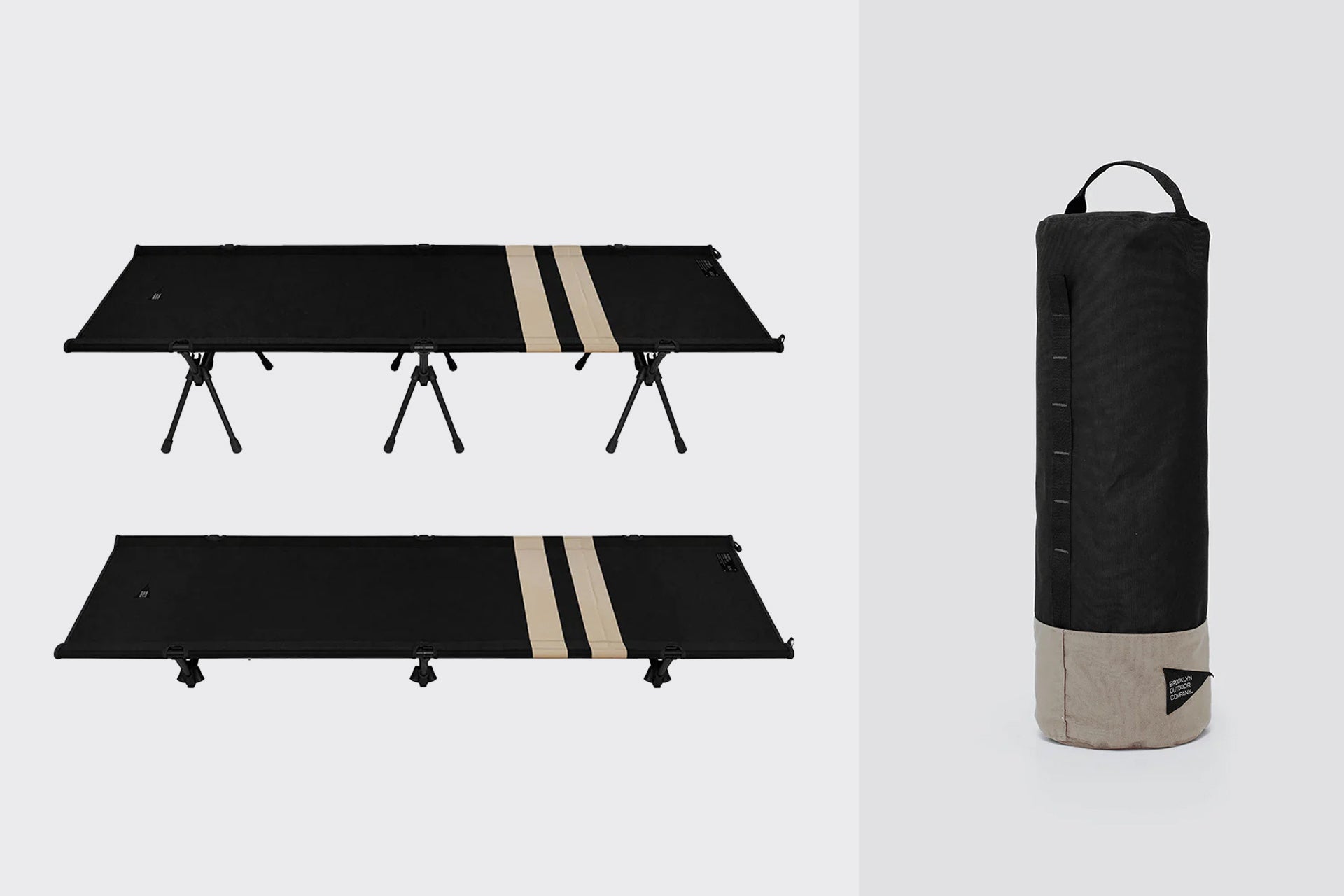 BROOKLYN OUTDOOR COMPANYは、人気のフォールディングコット「The 600D Folding Cot」に新たに2つのストライプカラーを追加しました。既存のBLACK、COYOTE(単色)に加え、GREIGE/BK、BK/GREIGEの2色が新登場。ブランド初の柄入りデザインとして、よりスタイルに合わせたサイトコーディネートが可能になりました。