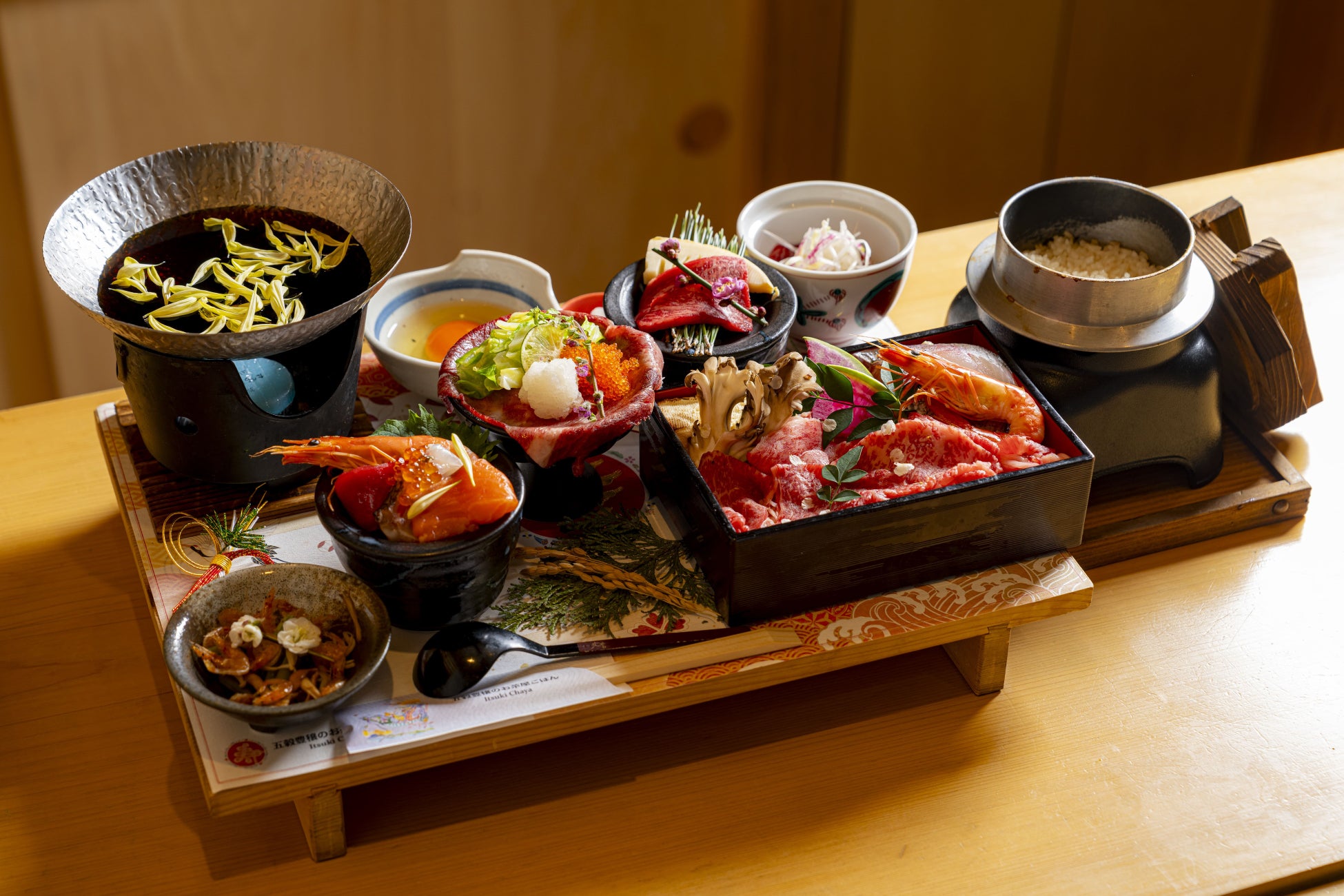 五穀豊穣のお茶屋ごはん®︎ 五木茶屋 先斗町店では、和牛を中心に旬の食材を堪能できる【春の京丼五種食べ比べ膳®︎】をご用意しています。