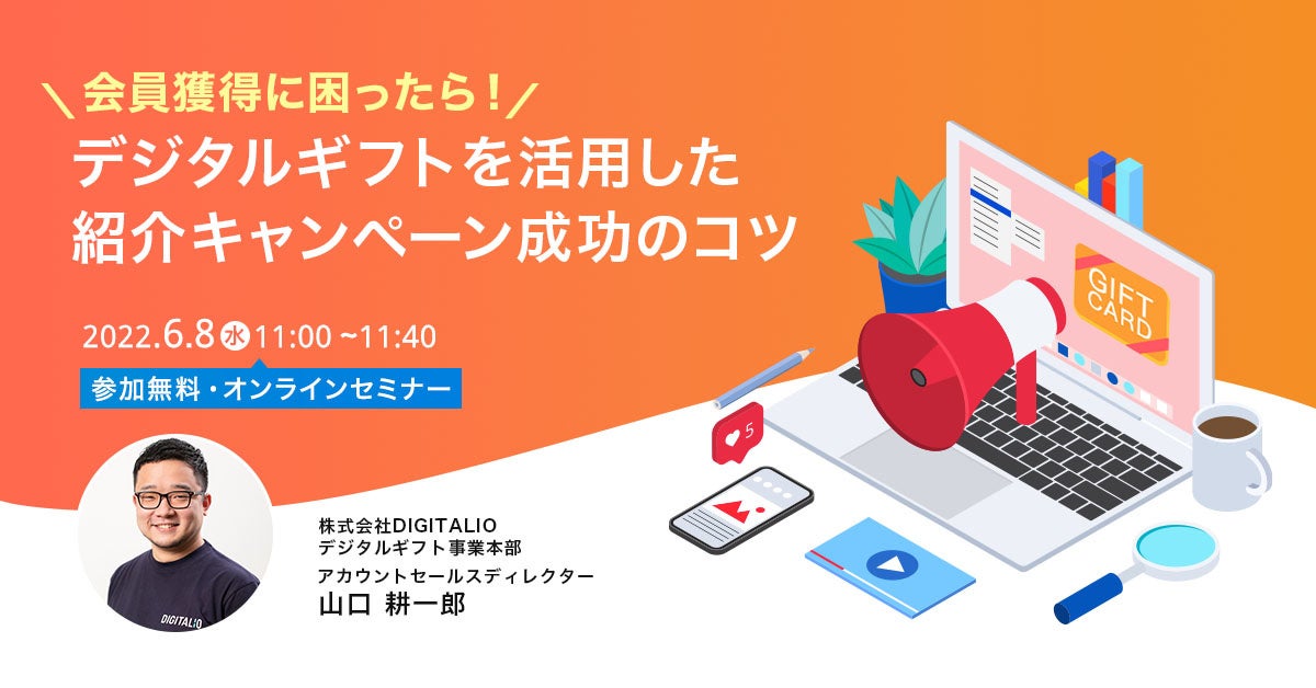 【6/8(水)開催!無料ウェビナー】会員獲得に困ったら!デジタルギフトを活用した紹介キャンペーン成功のコツ
