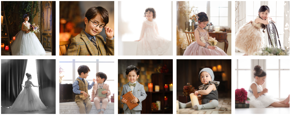 プランは、レンタル衣装1着、スマホデータ1カット付きで平日500円(税込550円)とリーズナブル。家族だけの個室スタジオでリラックスして撮影するので、いつもの自然な表情や笑顔はもちろん、ドラマチックな背景やプロの技術でいつもとは一味違うクラシカルな「絵画のような一枚」も撮影でき、多くの家族に好評です。