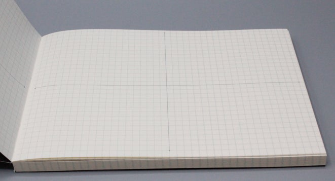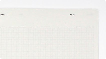 4つのエリアに区切られた方眼のレイアウトが使う人の想像力を掻き立てる、ユニークなメモノートです。横型サイズなのでPCの手前に置いておき、いつでも書き込むことができます。