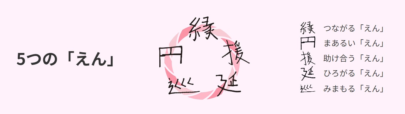 「ご縁」をいただく皆さまとパートナーシップを組み、相互協力しながらより良い未来をつくる活動をしていきたい。そんな想いを5つの「えん」に込めています。