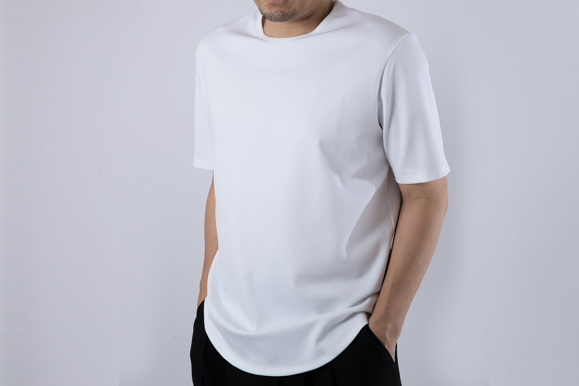 ロゴなし無地の白Tシャツがトップスの主役を担うに相応しい生地とデザインで春と夏の主役となるご提案をしてまいりました。