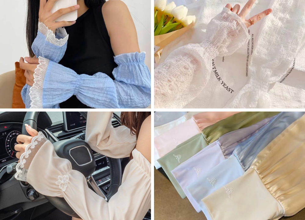 ①「サマーフェミニン」日除けスリーブ 各 3,200円(税込)