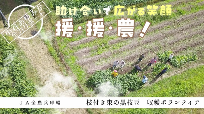 第1弾で取り上げるのは、兵庫県のブランド枝豆「丹波篠山黒枝豆」の農業ボランティアの取り組み。出荷期間が約3週間しかなく、農家にとっては短期間の人手が必要です。人手を求める声に応えようと、JA全農兵庫が農作業の〝お手伝い〟をしてくれる人を募集し、農家に派遣する取り組みに密着しました。