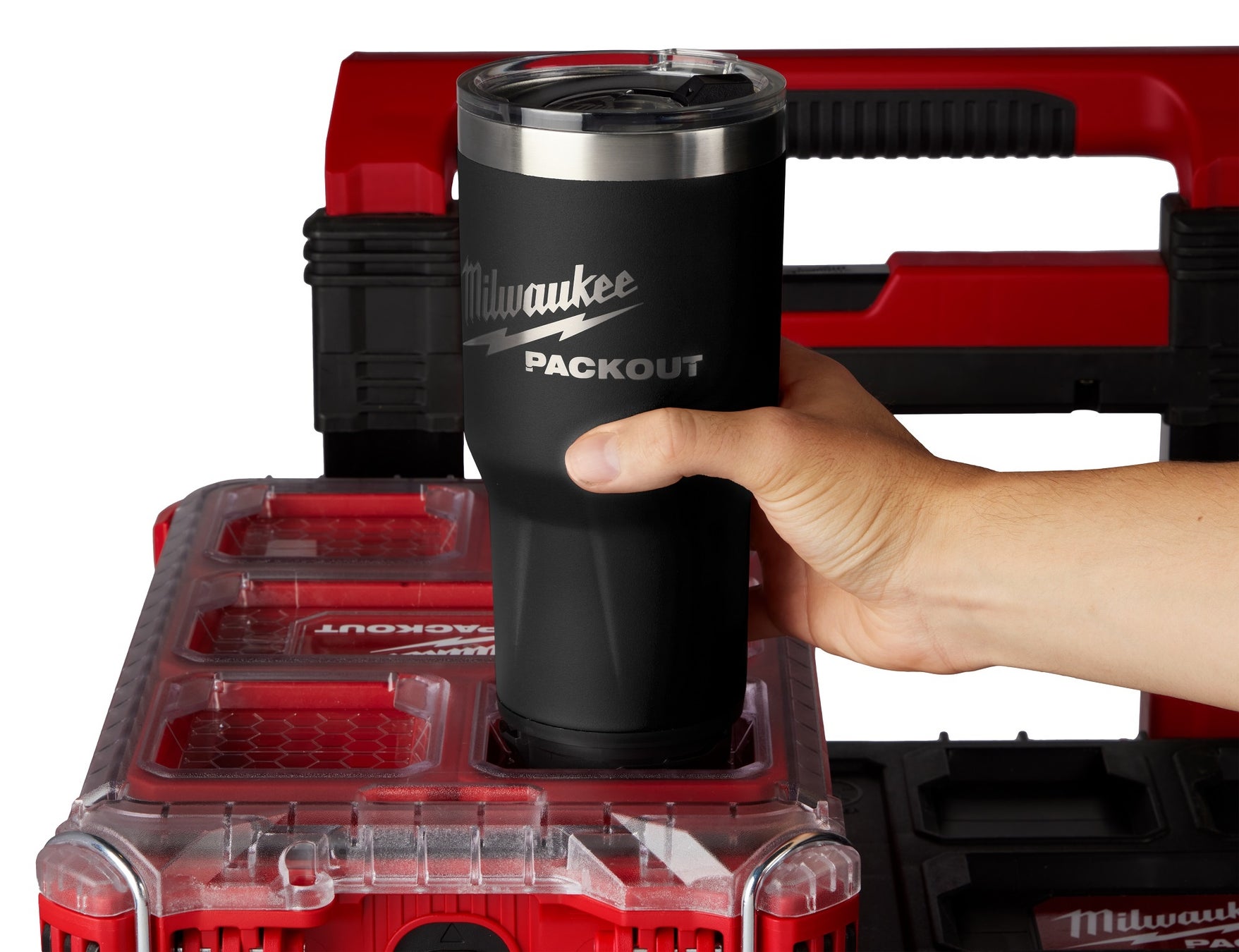 二重構造による真空断熱で、1日中保温・保冷をしたまま持ち歩きが可能です。食洗機も使用可能。PACKOUTシリーズの天板部分に連結が可能です。