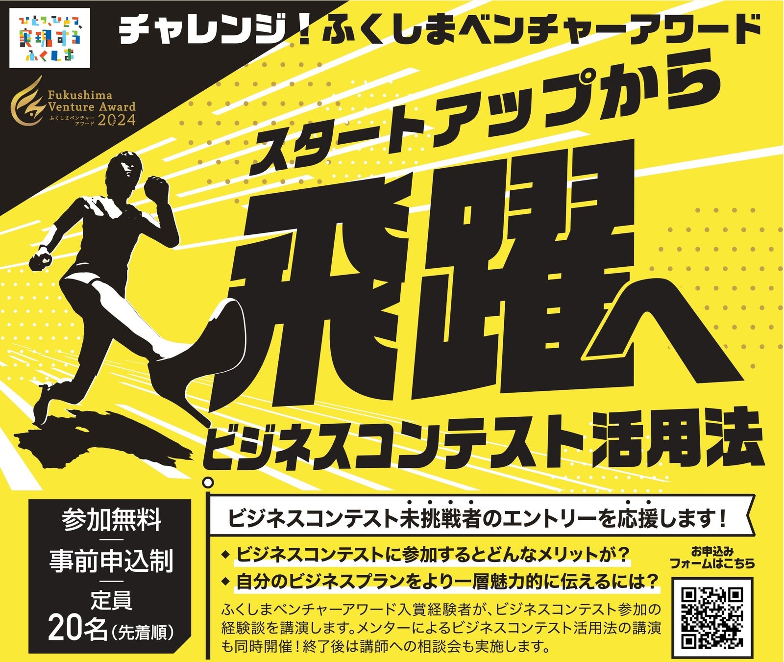 これまでのふくしまベンチャーアワードで入賞した先輩起業家がビジネスコンテスト参加の経験談を語るほか、起業家支援の専門家が事業計画書作成やプレゼンテーションのコツをお伝えします。