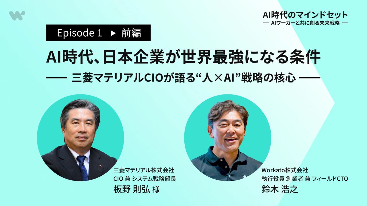 業界をリードするエージェンティック・オーケストレーション・自動化プラットフォームを提供するWorkato Inc.(本社:米国カリフォルニア州パロアルト、以下、Workato)の日本法人であるWorkato株式会社(所在地:東京都千代田区、以下、Workato Japan、執行役員社長 Allan Teng)は、Field CTO 鈴木浩之による新ポッドキャストシリーズ「AI時代のマインドセット ― AIワーカーと共に創る未来戦略 ―」を開始し、あわせてエピソード1を公開したことをお知らせします。
