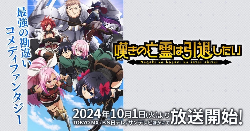 TVアニメ『嘆きの亡霊は引退したい』は2024年10月1日(火) よりTOKYO MX 、BS日テレ 、サンテレビ、AT-Xにて順次放送開始予定です。同作はWEB小説投稿サイトにて連載中の、槻影氏による異世界コメディファンタジー小説『嘆きの亡霊は引退したい』を原作としており、そのシリーズ累計発行部数は150万部を突破しています!原作最新小説12巻は2024年9月30日(月)に、コミカライズ最新10巻は2024年9月27日(金)に発売開始予定で、アニメ化発表に合わせたフェアの開催も決定しました。
