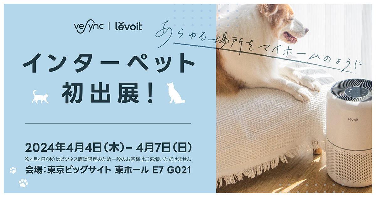 アメリカ発の小型家電メーカーのVeSync(ウィーシンク) Co., Ltd(本社:アメリカ カリフォルニア州)は、2024年 4月4日(木)~2024年4月7日(日)に東京ビッグサイトで開催する「第13回インターペット」に出展し、飼い主とペットの共生環境に清潔な空気を提供するLevoit空気清浄機をメインで展示する予定です。