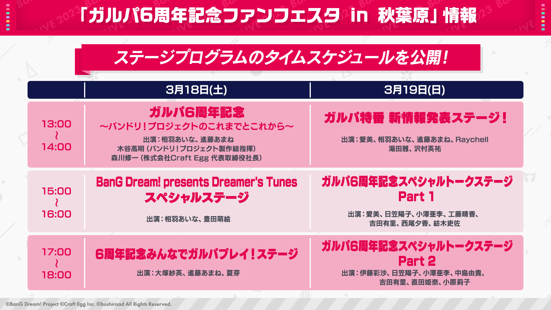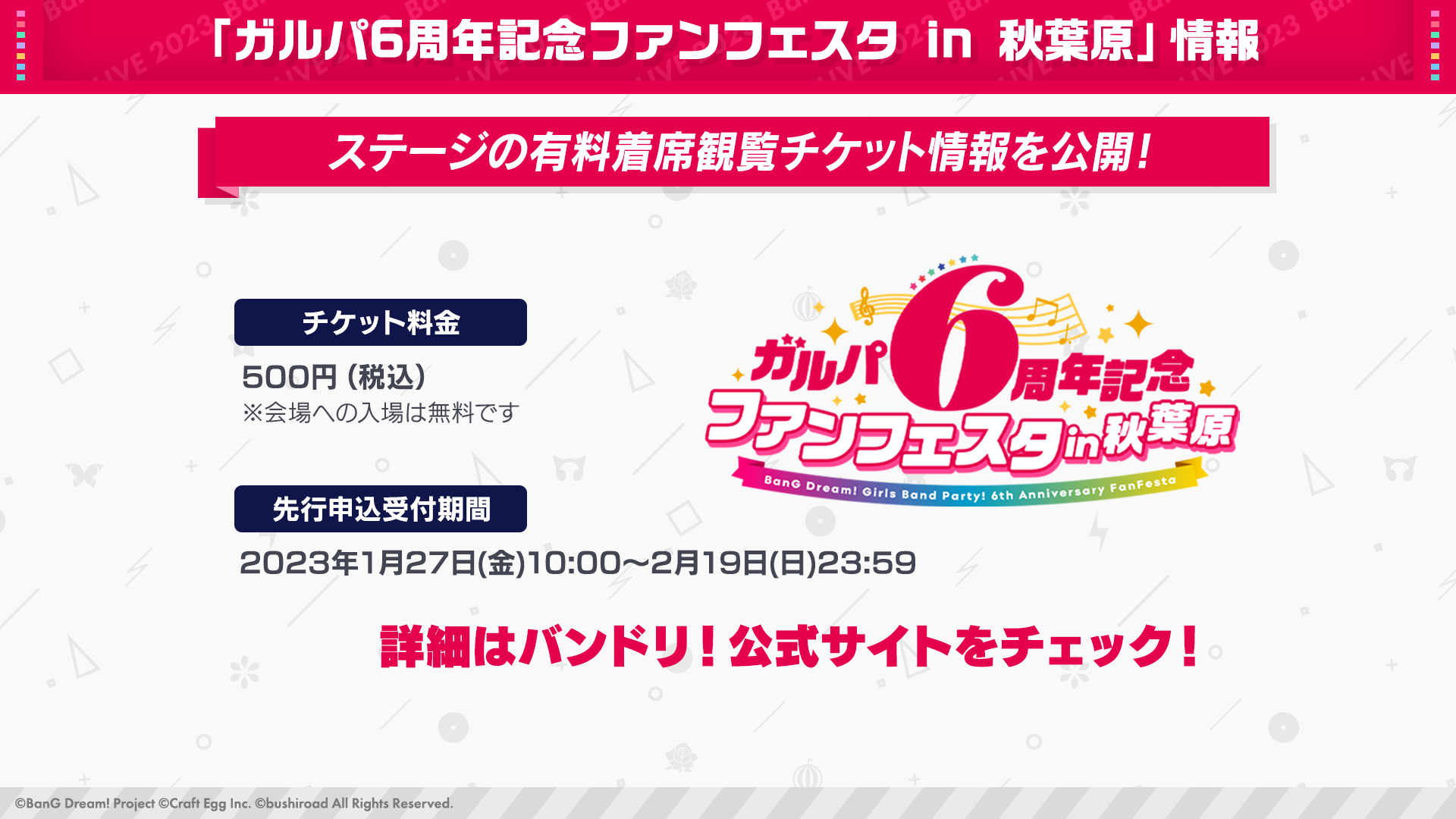 「ガルパ6周年記念ファンフェスタ in 秋葉原」の詳細:
