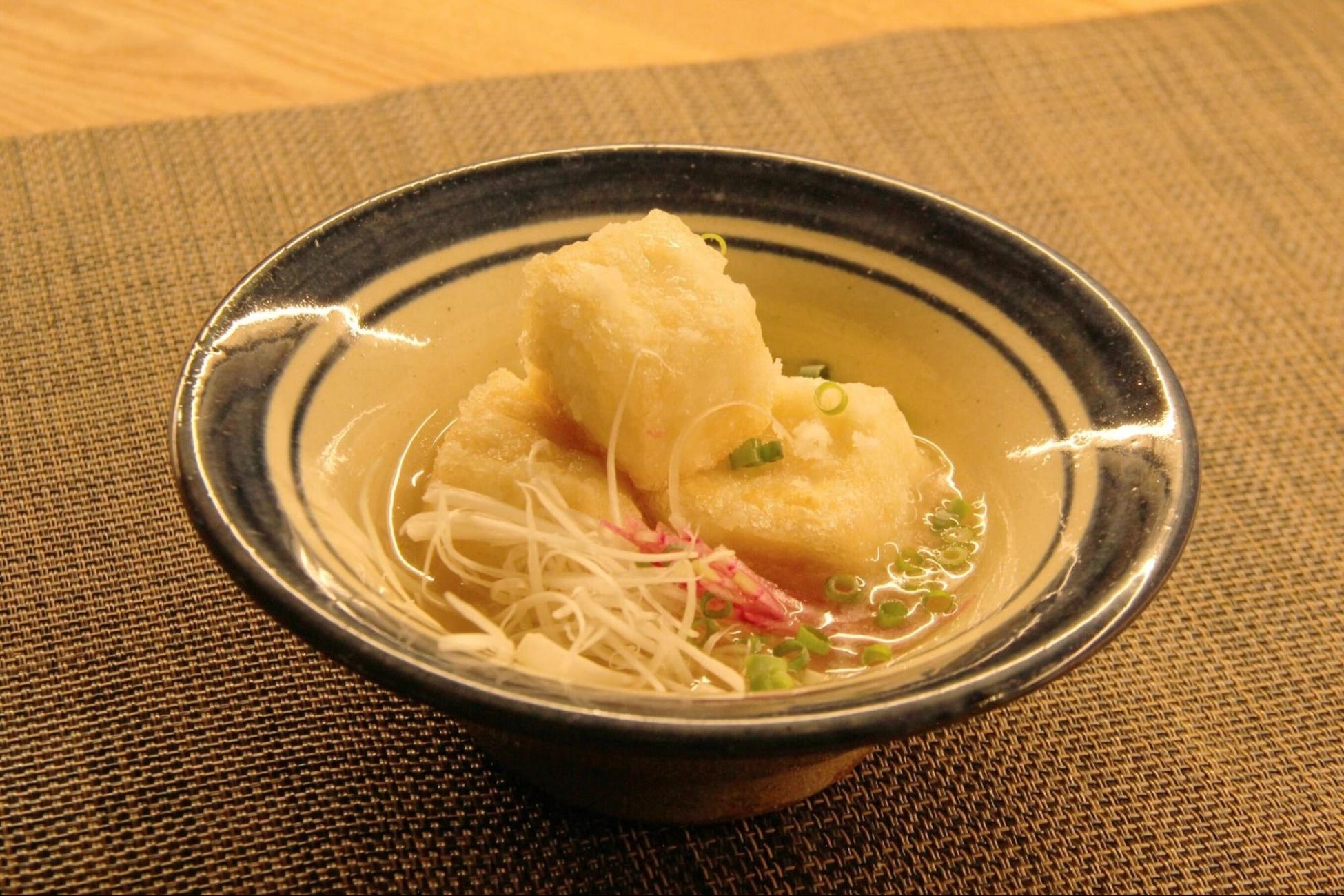新宿三丁目飲食店街のナチュラルワイン×沖縄料理『BISTRO CHURA(ビストロ ちゅら)』(代表 向山かおり)で、「ふわとろジーマミー豆腐の揚出し」と「もっちり沖縄そばの焼きボロネーゼ」が新登場