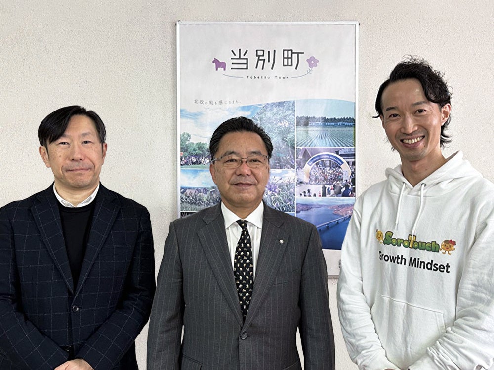 左からシーラクンス代表取締役社長 東海林様、当別町⻑ 後藤様、Digika代表取締役社長 橋本
