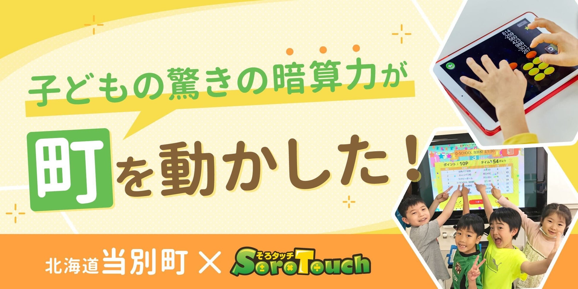 北海道にそろタッチは13教室を開講しています(2024年2月時点)。そのうち、シーラクンスが北海道札幌市で運営するそろタッチ教室 D-SCHOOL北海道サツドラ北8条校で学ぶ一人の生徒は、札幌市から27kmほど距離のある当別町から通い暗算力を習得した結果、その生徒の素晴らしい暗算力に当別町長初め町役場の方々の目に留まり、そこからシーラクンスのノウハウを活用することにより本プロジェクトのスタートにつながりました。