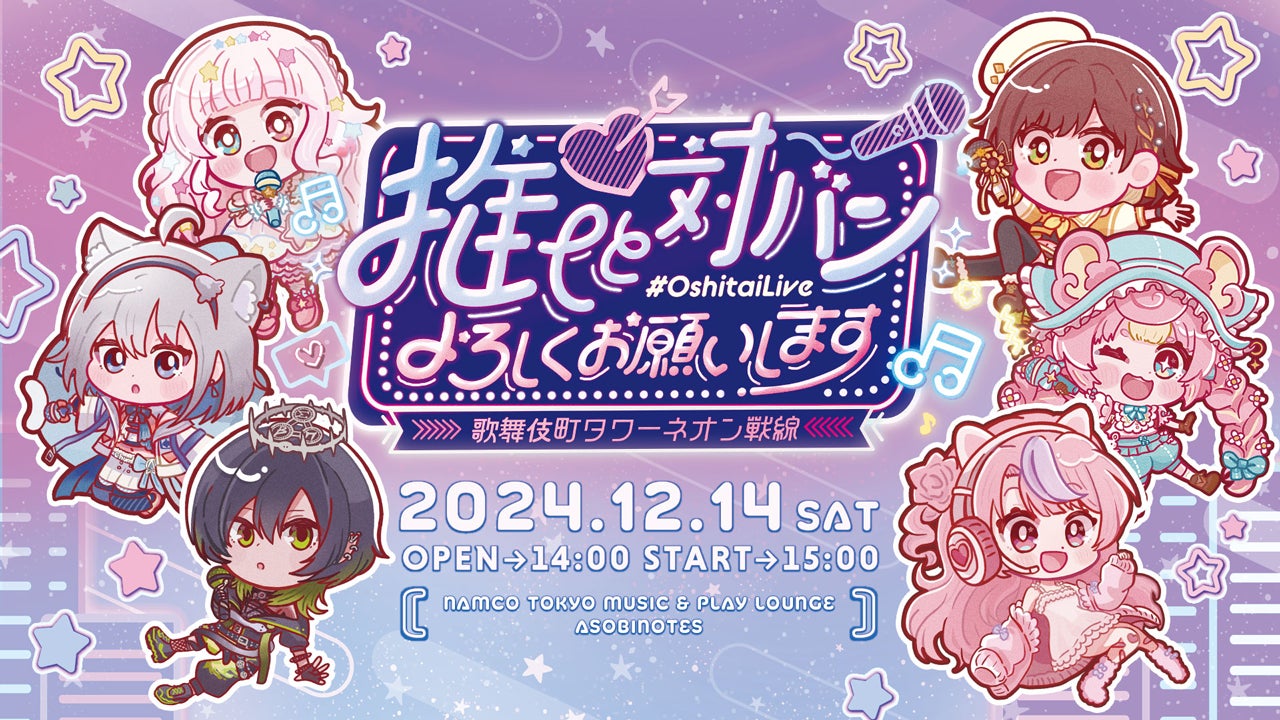 バーチャルタレント専用配信プラットフォーム「V-TIPS」は、VTuber事務所「ななはぴ」が主催するイベント「推しと対バンよろしくお願いします〜歌舞伎町タワー ネオン戦線〜」のオンライン配信を、2024年12月14日(土)14時から行います。本イベントは、人気VSingerたちが新宿のランドマーク・歌舞伎町タワーに集結し、会場のnamco TOKYO(ナムコトーキョー)からお送りする音楽ライブです。