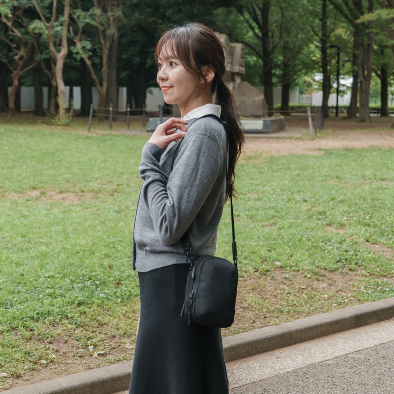 本体重量わずか 290g。軽量ながら、スマートフォンと日々の必需品がすっきりまとまる収納力を備えた、ミニマリスト向け軽量スマートフォンポーチです。