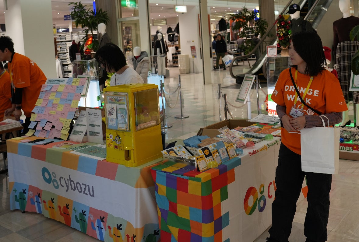 日頃から自治体や児童養護施設等に自社のプロダクトであるキントーンを提供し、業務改善等を支援するなど、社会課題に強い関心を持つサイボウズ社。本イベントでは、親子で楽しめる参加型ブースをご出展いただきました。ブースでは、アンケートに回答するとガチャガチャを回せる企画を実施。「あなたがわくわくする時は?」 「困った時に頼れる先はいくつありますか?」 の2つから1つに回答する形式で、こどもが普段とは違う一面を見せたり、家族で価値観を共有するきっかけになっている様子が見受けられました。景品は、サイボウズ社オリジナルキャラクターのステッカーをはじめ、ラムネ、紅茶、コーヒー、付箋などバリエーション豊富で、選ぶ際に「どれがいいかな?」と、相談する姿が見られたりとイベントの温かい雰囲気づくりに大きく貢献いただきました。
