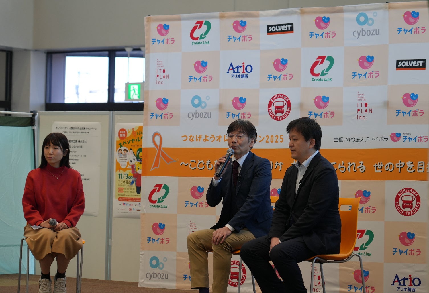 特定非営利活動法人チャイボラ(所在:東京都豊島区、代表理事:大山 遥) は、オレンジリボン・児童虐待防止推進キャンペーン月間に合わせ、2025年11月3日(月・祝)アリオ葛西(東京都江戸川区)にて、「つなげようオレンジリボン2025~こども達一人ひとりが大切に育てられる世の中を目指して~」を開催し、盛況のうちに終了いたしました。本イベントは、東京23区で初めて児童相談所を開設した江戸川区の後援、アリオ葛西などの特別協力のもと、「親も子も楽しめる、学べる」企画を多数実施いたしました。子育て世代が多く利用するアリオ葛西を会場とすることで、児童養護施設や児童相談所の役割について正しい理解を促し、地域の様々な子育て支援情報を伝えることで孤育てを防ぐという目的に向け、多くの来場者に直接アプローチすることができました。
