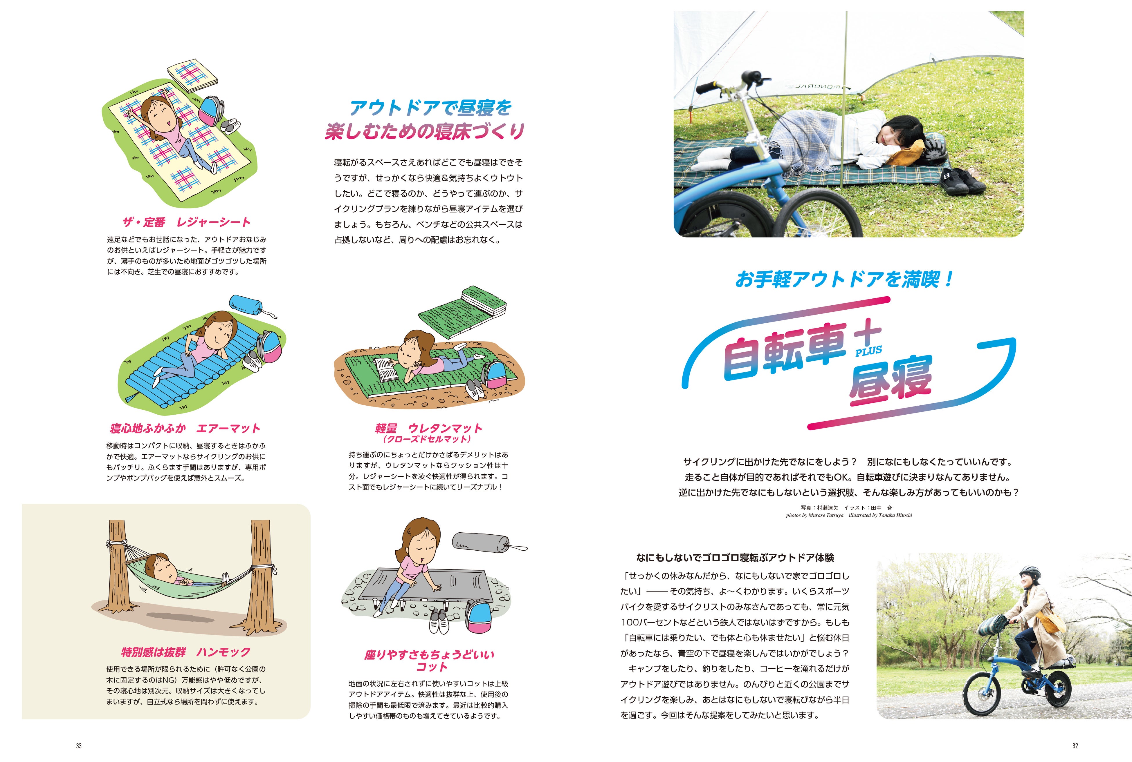 今回は、「自転車+昼寝」を提案。昼寝道具のマットやコットの使用レビューも見応えありです。