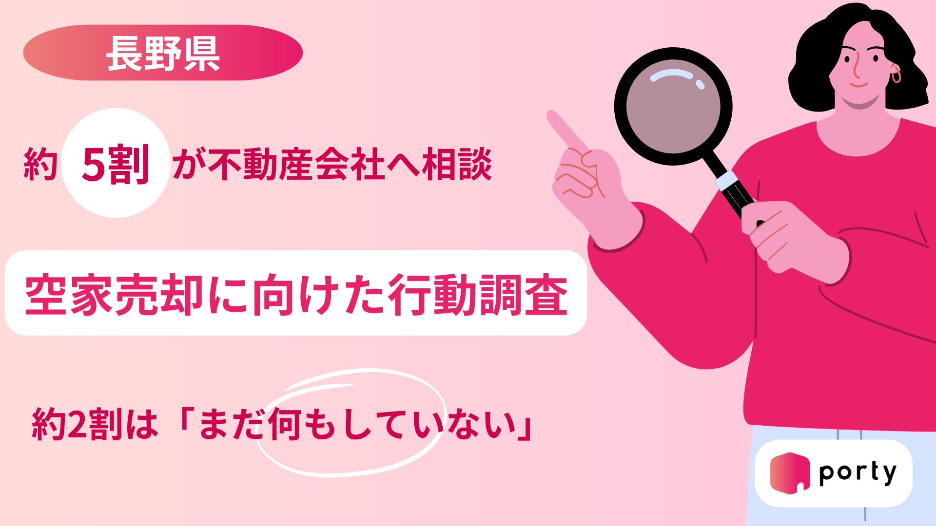 株式会社ポルティ(本社:神奈川県川崎市、代表取締役:平 瑶平、以下「ポルティ」)は、長野県で空き家を所有し、売却のためにすでに行動を起こした方71名を対象に、具体的にどのような行動を取ったかについて調査しました。(本調査は長野県の空き家オーナーおよび相続予定者250名を対象とした調査の一部です)